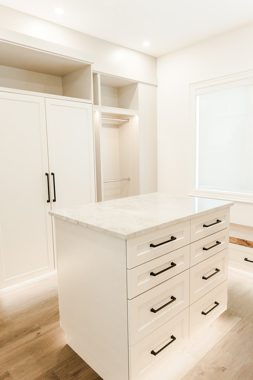We believe that a well-designed closet should be as durable as it is elegant. That’s why The Cabinet Mill uses only high-quality materials, such as solid wood, premium laminates, and high-end hardware, to construct custom storage solutions that stand the test of time. Our skilled craftsmen pay close attention to every detail, from precision-cut shelving to soft-close drawers, resulting in a refined and polished finish. With a commitment to excellence, we deliver closets that offer both visual appeal and long-lasting performance.